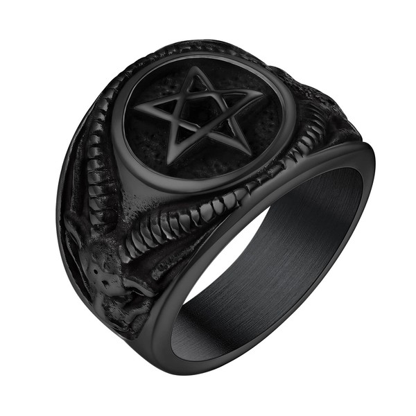 Bandmax Men Baphomet Goat Head Rings Stainless Steel Satan Pentagram Rings Black Punk Gothic Rings Baphomet Jewelry