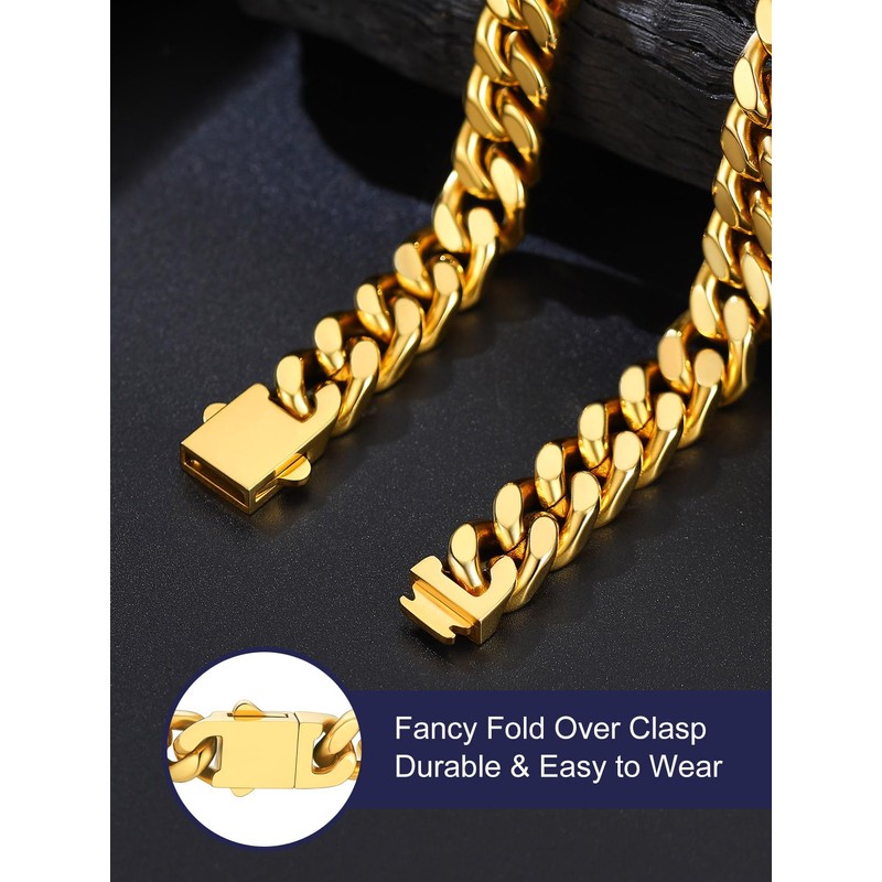 Bandmax Thick Cuban Link Chain Necklace for Men 12mm Wide Hip Hop Chain with Strong Clasp,76cm Curb Chains Gold