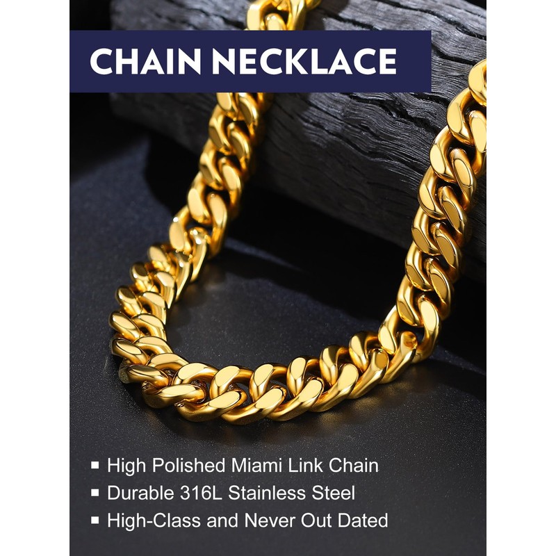 Bandmax Thick Cuban Link Chain Necklace for Men 12mm Wide Hip Hop Chain with Strong Clasp,76cm Curb Chains Gold