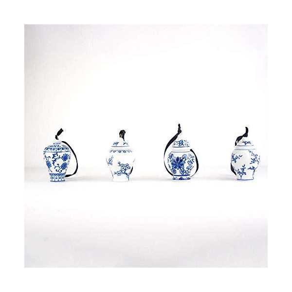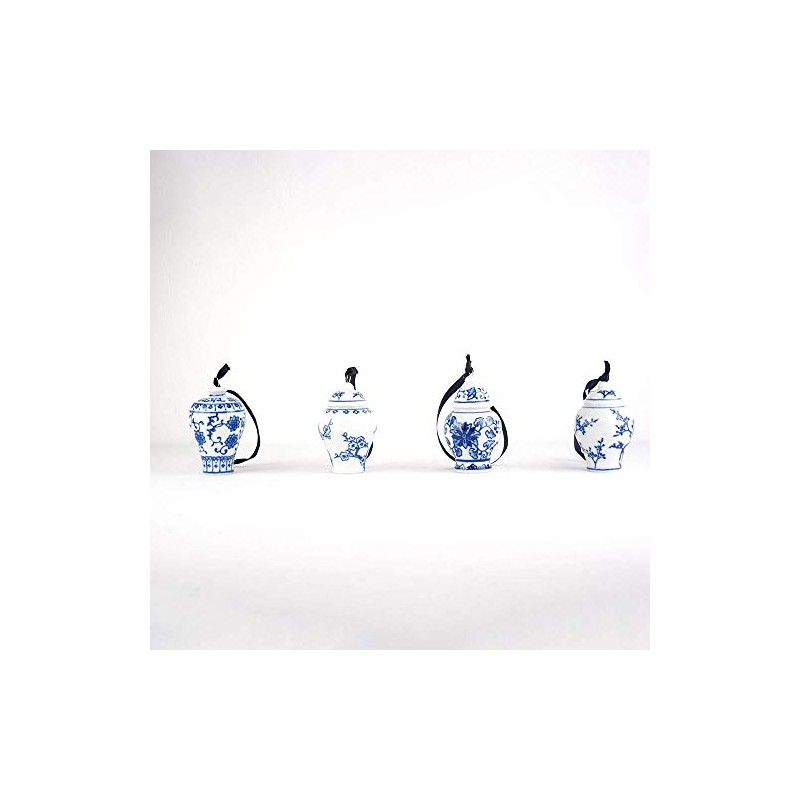 - GINGER JAR ORNAMENT SET - Inspired by traditional blue-and-white chinoiserie, these miniature porcelain ginger jars make creative Christmas tree ornaments. Sold as a set of 4.