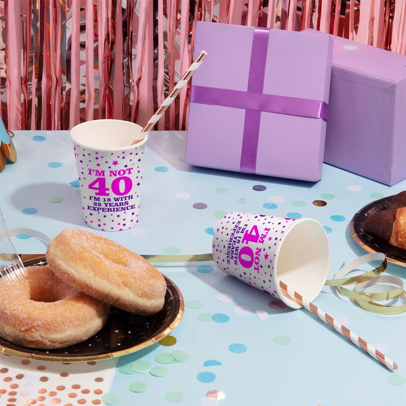 - PAPER CUPS: Made from high-quality sturdy card paper, the pack of 24 paper party cups feature a vibrant and colourful 40th birthday decoration that will add a fun touch to any birthday table decorations