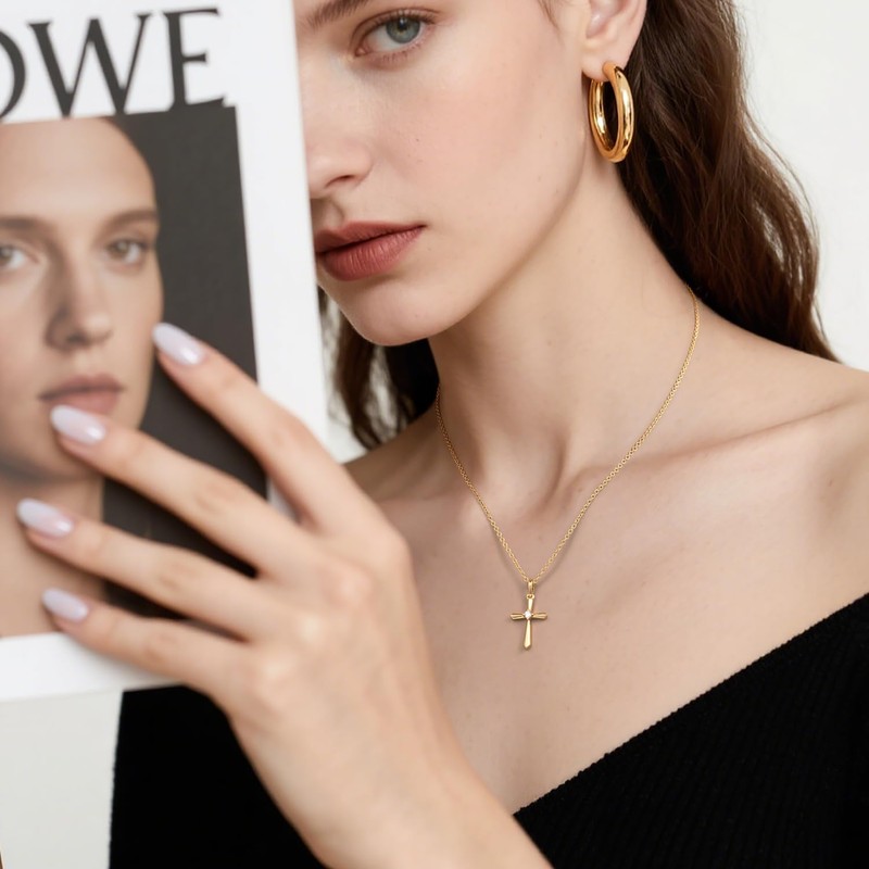 - [A MODERN TAKE ON THE CROSS] This gold necklace for women trendy has sharp tapered lines that create a clean structured silhouette. By stripping away the bulkiness of traditional designs, the gold plated necklaces for women blends timeless symbolism with a modern minimalist edge