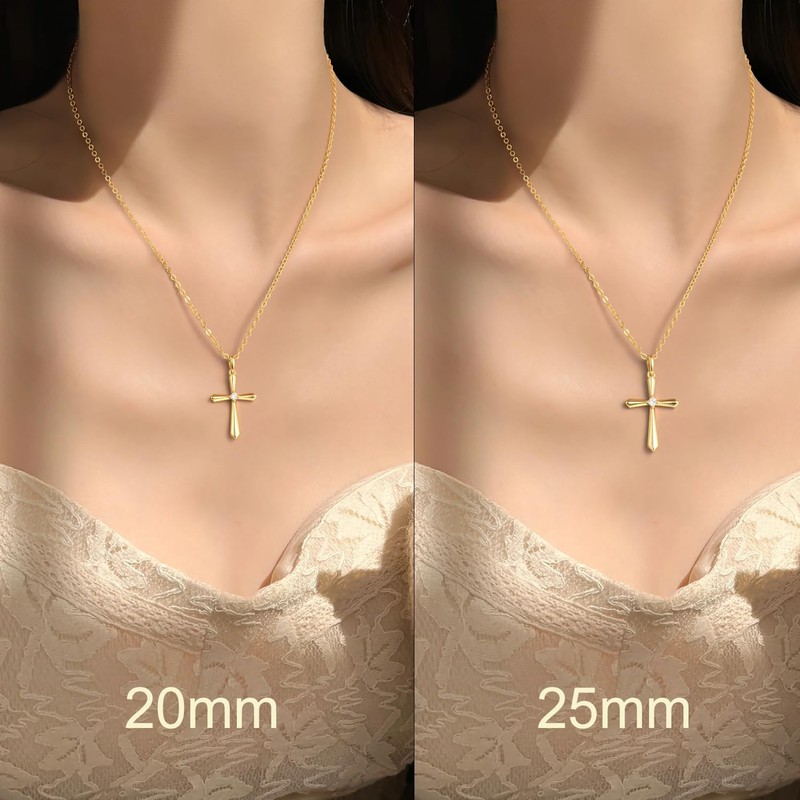 - [EASY PAIRING, MAXIMUM IMPACT] From basic tees to crisp white shirts or little black dresses, this gold cross necklaces for women brings instant polish. The sleek form and sparkling accent of the gold cross pendant add depth to even the simplest outfits. The gold cross chain is your go-to piece for turning “minimal” into “memorable” with effortless charm