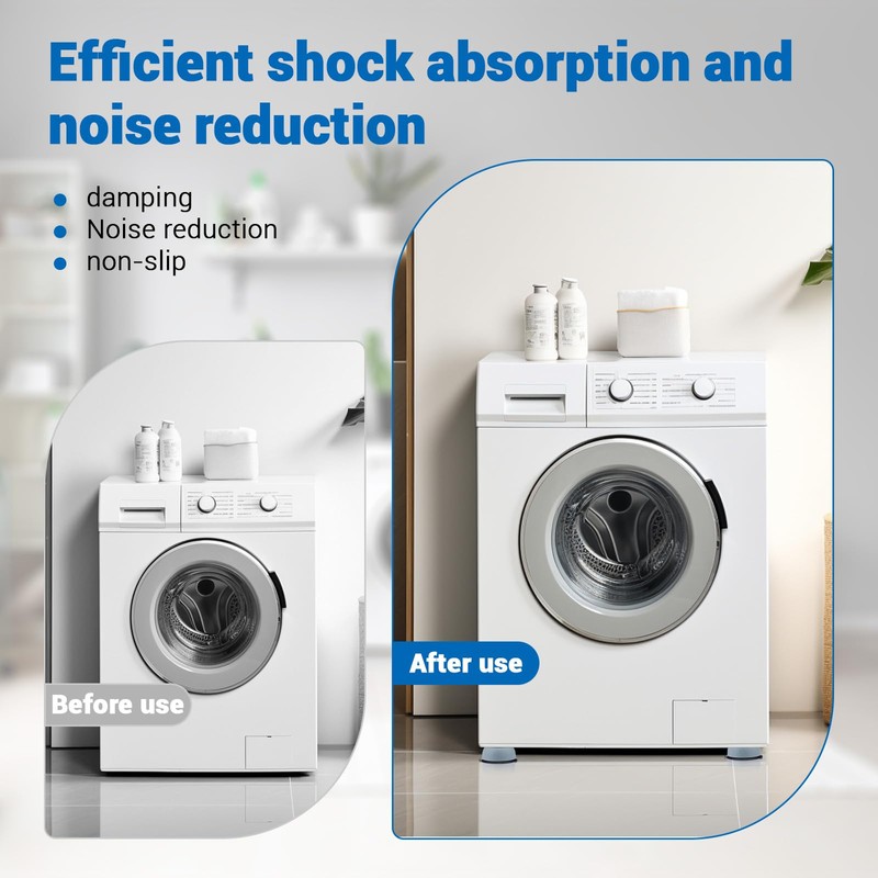 - Easy to Install: No tools or adhesives are needed. Just lift your appliances and install our plastic washing machine supports on the feet of appliances. This will stabilize your household items, effectively absorbing vibrations and reducing noise