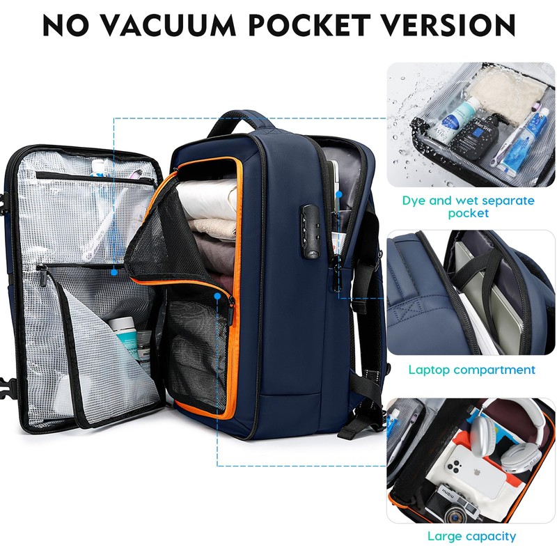- Pocket version:The travel backpack does not come with a vacuum pocket version, so if you need a larger space, please choose the vacuum pocket version reasonably.The laptop backpack is made of Oxford cloth material, which is not only waterproof but also scratch resistant.