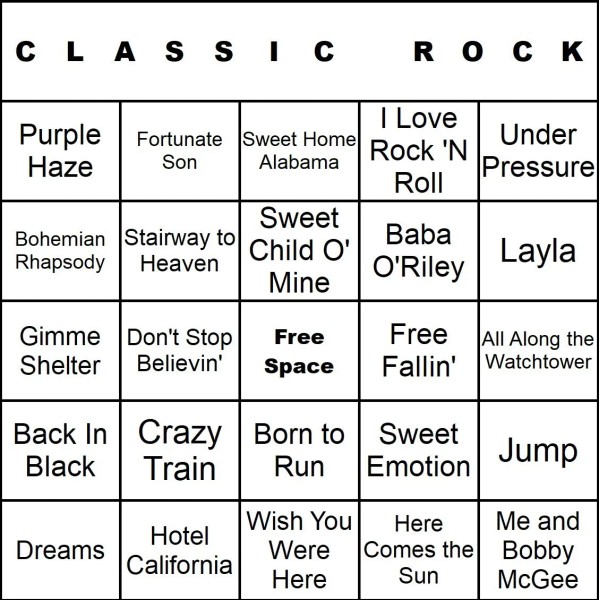 banginmeats Classic Rock 100 Music Bingo Cards Printed And Laminated With Playlists