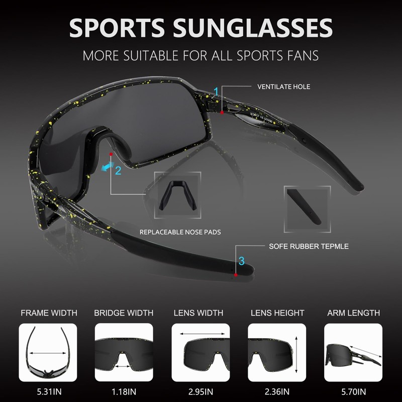- 【LIGHTWEIGHT FRAME】: Our cycling sunglasses are designed with a super-lightweight frame that offers exceptional flexibility, heat resistance, and UV resistance. The wraparound design minimizes air resistance and protects your eyes from harmful UV rays, dust, and wind.