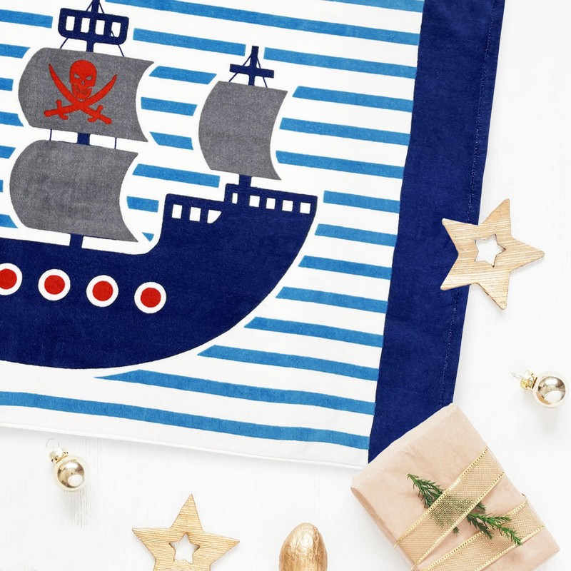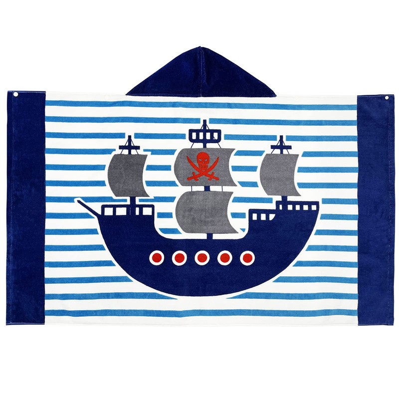 BANGSAUR Kids Hooded Beach Bath Towels, 100% Cotton 50"x30" Wrap Blanket, Toddlers Boys 3-12 Years Coverup Towel Pirate Ship