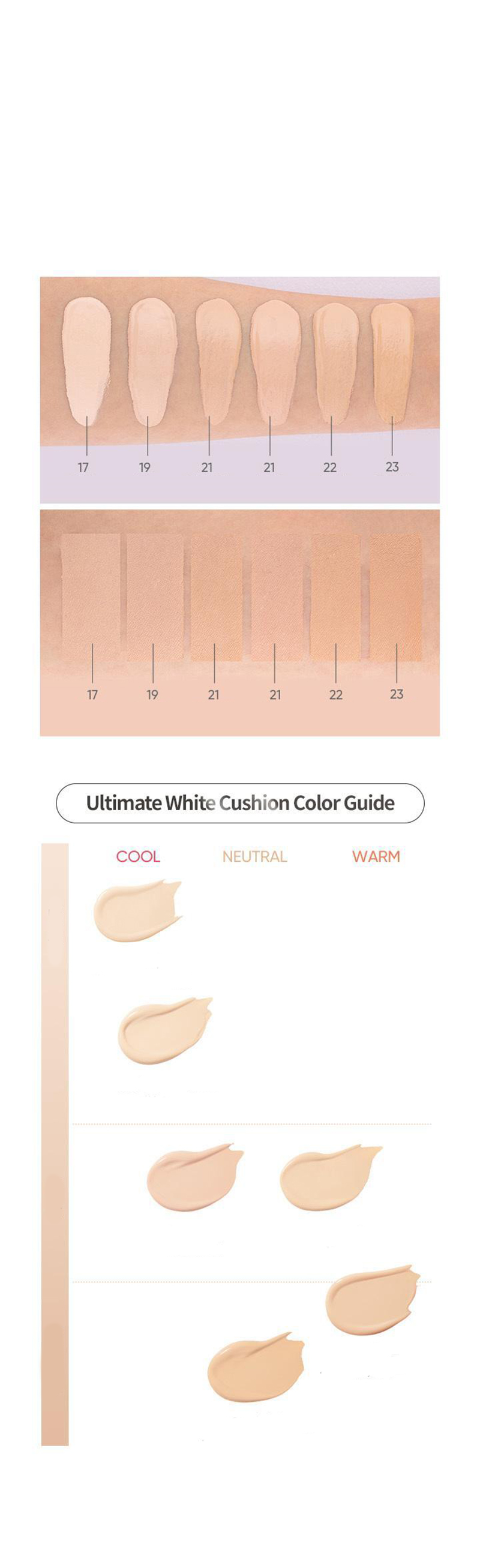 This is an exclusive product only in Olive Young. Expresses the flawless skin as if it was originally yours. The cleanliness of the first touch remains as if it's your skin, and it is possible to portray a clear and bright look for a long time. Create beautiful skin that standouts anywhere, anytime with the White Cushion. According to the reviews, the makeup stays the same even after 12 hours, expresses a seamless brightness and dense look, fitting texture, long-lasting and has minimal smudging on masks, keeps the skin comfortable and skin tone evenly corrected all day long. Creates a smooth and clear skin of flawless skin that does not change over time. You can achieve a brightening skin tone cover like your own skin. Shown effect in improving skin tone by covering dullness, redness, and yellowness. The Ultimate Fitting system creates a smooth, flawless skin without any gaps, closely adhering and without any curves. A flawless cover with a light, breathable feel, and a clear matte finish product. This product demonstrates consumer-approved satisfaction in coverage, smooth skin expression, and 100% cover maintenance. The product contains an ideal blend of white truffle essence and white flower complex, allowing for comfortable skincare that leaves the skin clean and bright. The White Cushion is a comfortable vegan formula that feels moist inside with a clean matte finish. Completed the Italian Vegan V-label certification, and has completed skin irritation tests. A product with delicately designed color shades for clear and bright complexion, suitable for any skin tone. Completed tests and shown results in 24-hour anti-darkening effect.