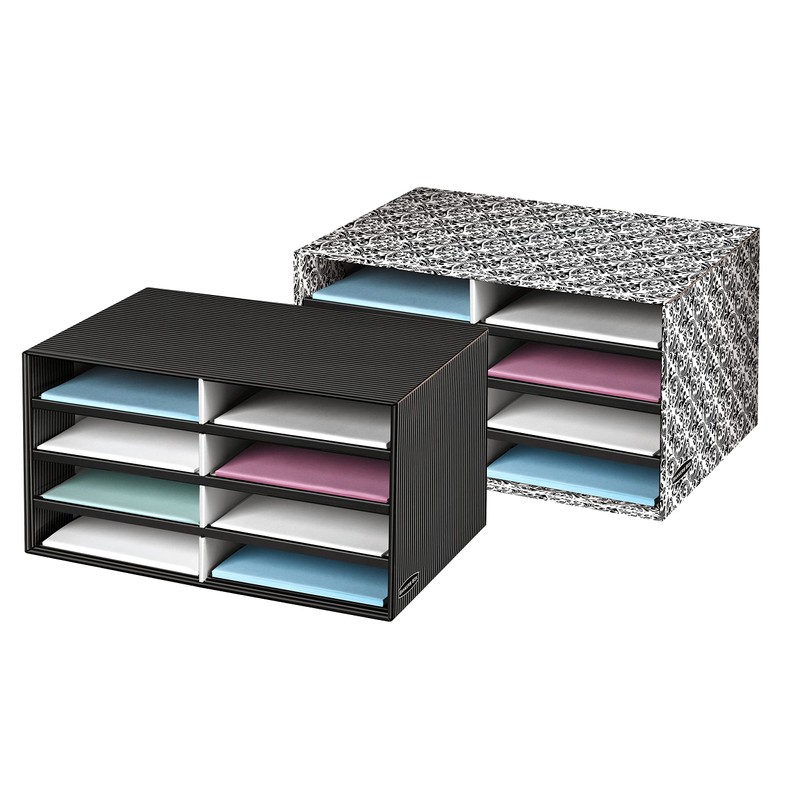 Bankers Box Decorative Eight Compartment Literature Sorter, Letter, Black/Gray Pinstripe (6170301)