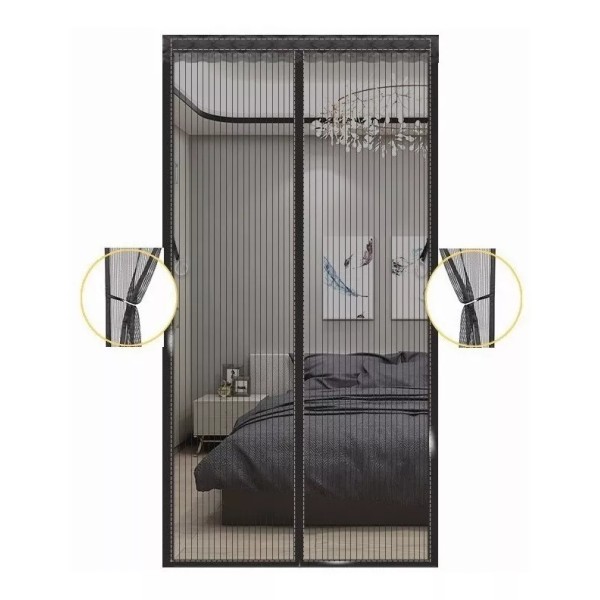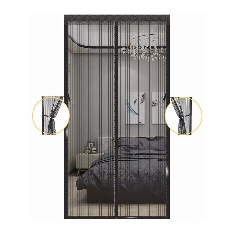La mosquitera puerta magnética nos protege de insectos, moscas, mosquitos y deja entrar aire fresco; además es lo suficientemente ligera como para que niños y mascotas puedan pasar fácilmente por esta puerta mosquitera. La puerta mosquitera con cerradura magnética se puede instalar fácilmente en puertas balconeras, dormitorios, cocinas, habitaciones infantiles o puertas correderas.