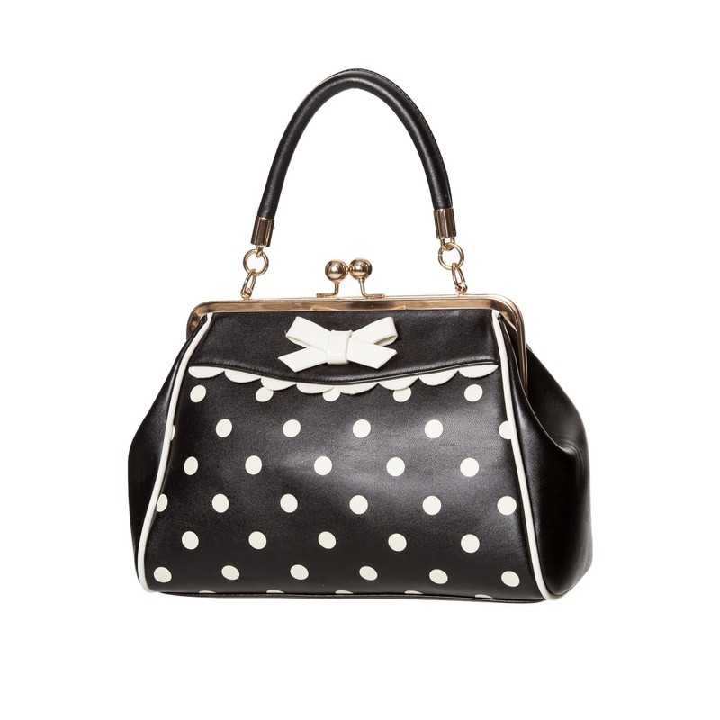 Banned Crazy Little Thing Vintage Bag 50s Rockabilly Polka Top Handle Handbag - Black & White