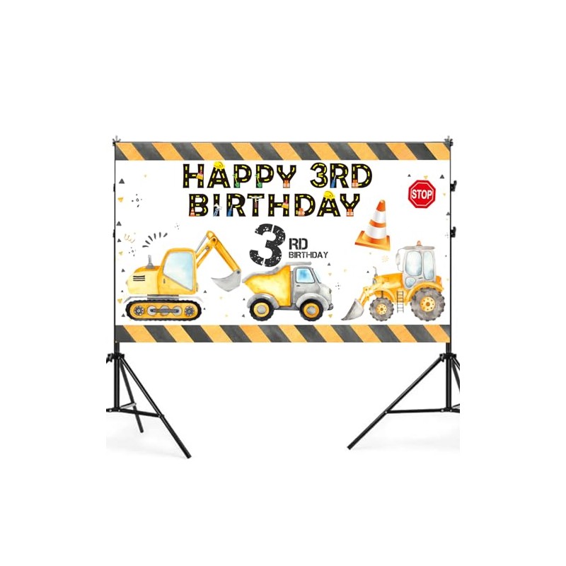 - Recibirás: 1 pancarta de construcción de feliz tercer cumpleaños, adecuado para todos los amantes de la construcción de 3 años de edad, fiesta de cumpleaños.
