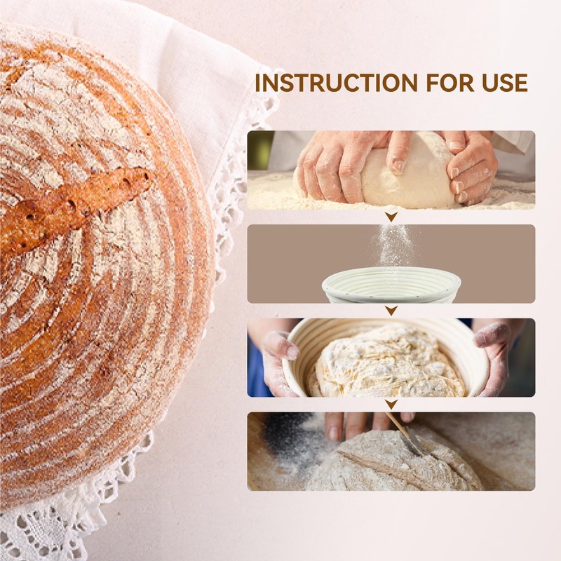 • Perfect Gift for Home Sourdough Bread Bakers: Our bread proofing basket set can be used for a variety of bread recipes, including sourdough, French bread, and more. Holds 1.5 pounds of dough with 9 inch (D) x 3.5 inch (H) size
