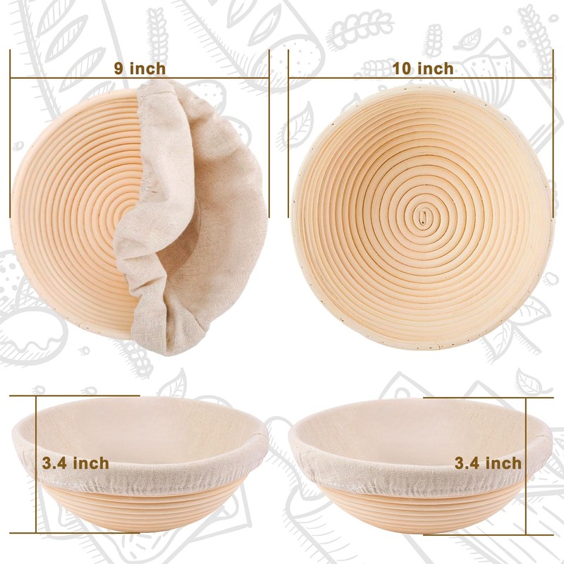 Banneton Bread Proofing Basket Set, Sourdough Starter Kit, 10 inch & 9 inch Round Proofing Baskets with Full Set of Bread Making Kit, Sourdough Bread Baking Supplies, Baking Gifts