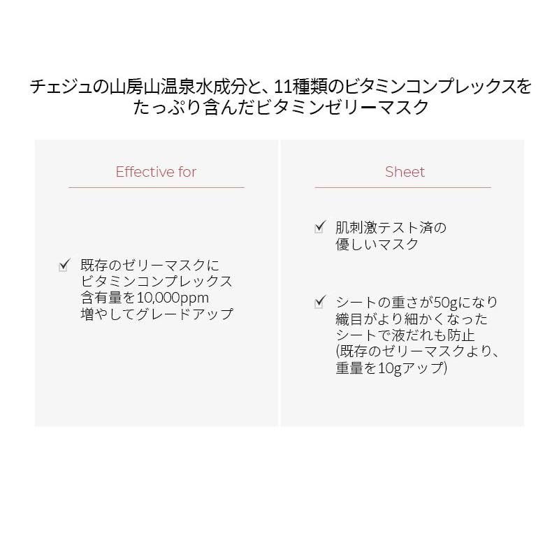 - A vitamin mask that is very popular even in Korea. Uses hot spring water from Zeju Island, and leads to moisturizing skin. Recommended for dry and loose resilience