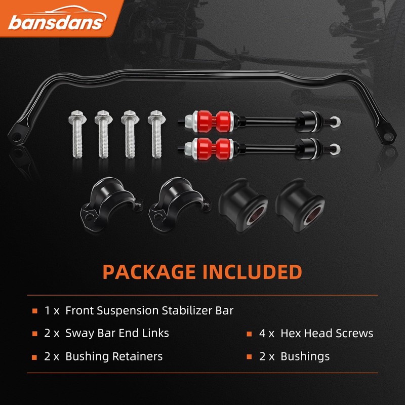 - Contents of the package: 1 55398938AC Front Sway Bar, a 52110141AB Front Sway Bar Bushings Kit (including 2 bushings, 2 bushing retainers, and 4 hex head screws), and 2 Sway Bar End Links, all of which are high-quality parts for improving your vehicle's suspension performance.