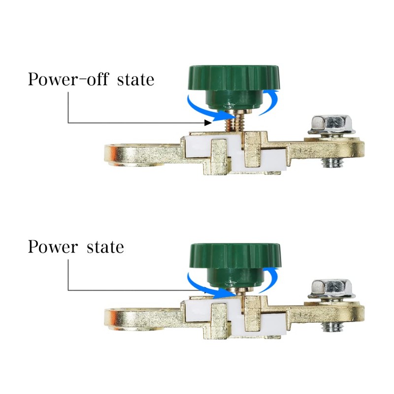 - [No battery power consumption] This battery isolation switch can quickly cut off the battery power. When the vehicle is parked for a long time, the knob can be turned to the off position to eliminate battery power consumption and increase battery life.
