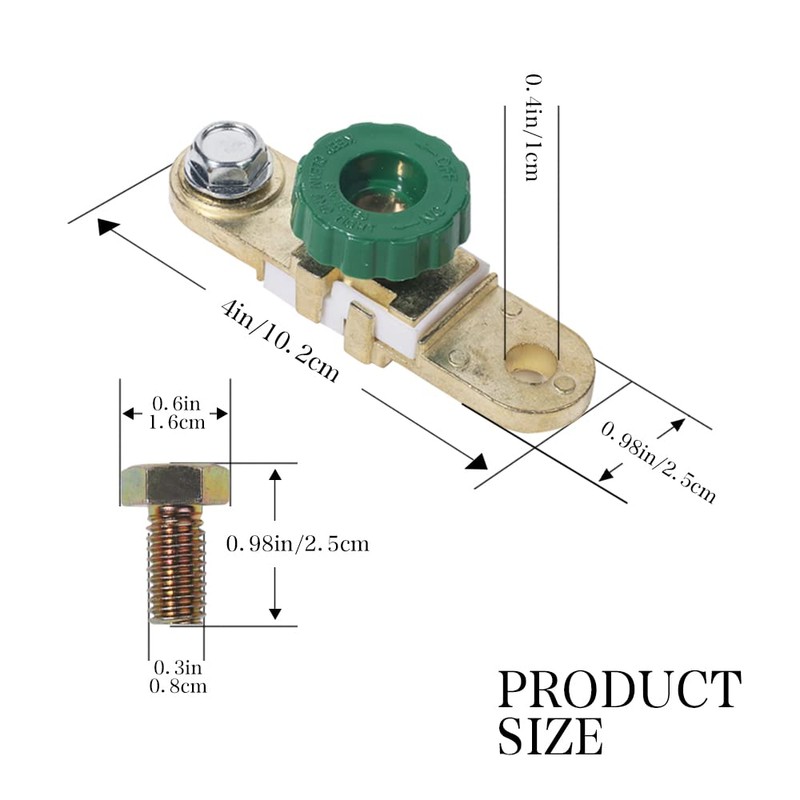 - [Durable material] The side-post battery cut-off switch is made of solid brass, which is rust-proof, corrosion-resistant, durable, superior in performance and good in conductivity.