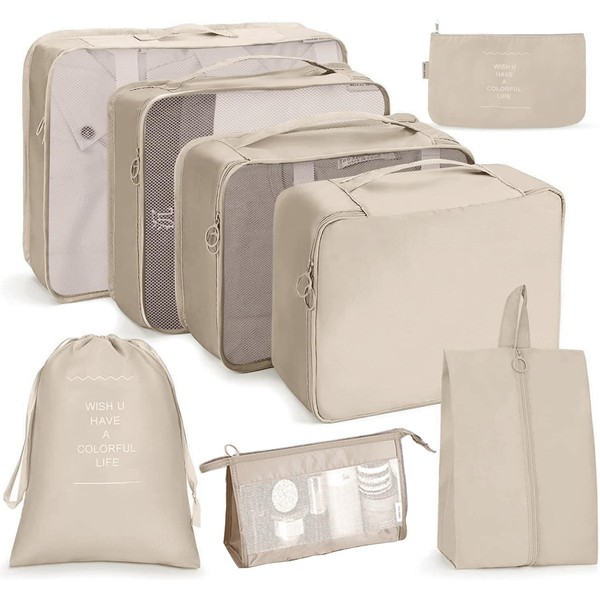 Bansga Packing Cubes for Suitcase 8 Sizes Suitcase Organizer Bags 8 pcs(Beige)