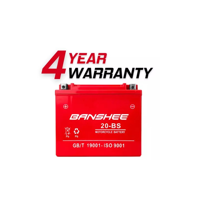 | YTX20-BS High Performance AGM Battery Voltage: 12 Volts Capacity: 18Ah ( Amp Hours ) Cold Cranking Amps: 295 CCA's L = 6.94 x W = 3.13 H = 6.00 • Maintenance Free AGM Battery • Spill Proof ( Sealed Lead-Acid ) Battery • Position-Free & Leakage-Free Design • Low Pressure Venting System • High Recovery Capability |