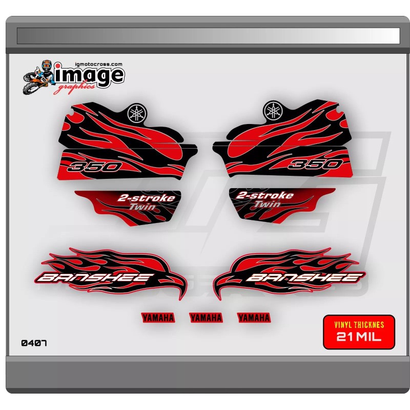 banshee Yamaha banshee graphics RED BLACKSTYLE 2008 KIT 21MIL THICK HIGH GLOSS