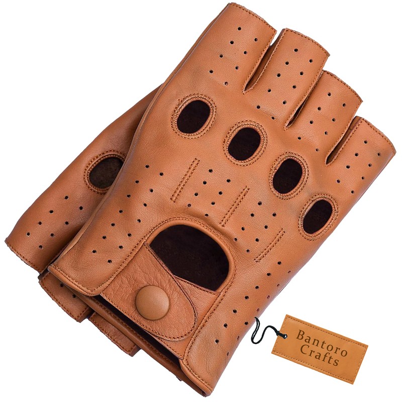 - HIGH QUALITY BROWN SHEEPSKIN - These fingerless motorist gloves are made of high quality soft sheepskin providing lasting comfort, durability and flexibility.