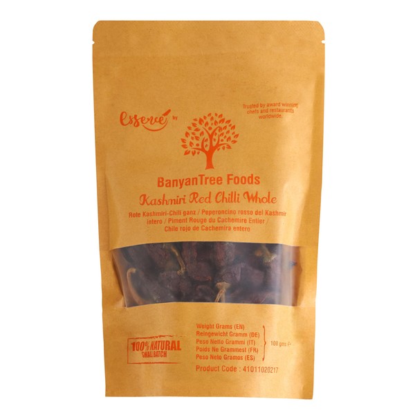 BanyanTree Foods Kashmiri Red Chilli Whole 100g ~ All Natural, Indian Origin