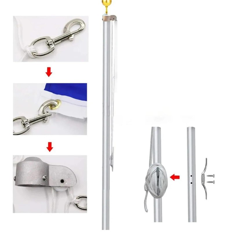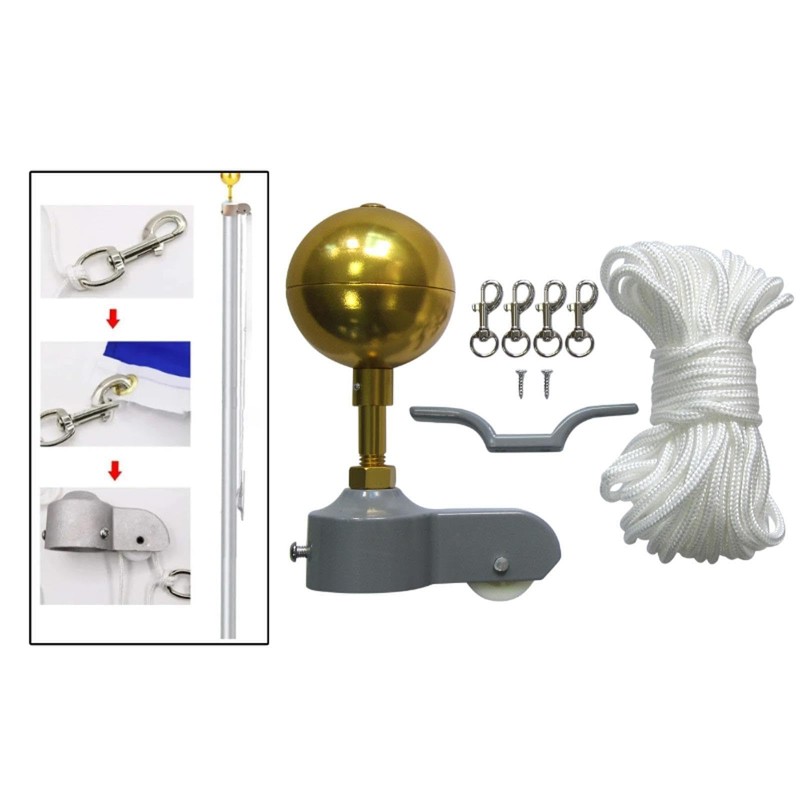 - 【Complete Set of Accessories】3" topper aluminum ball, metal cleat, 4x metal swivel snap clips, flagpole truck with nylon pulley, 37.7ft rope