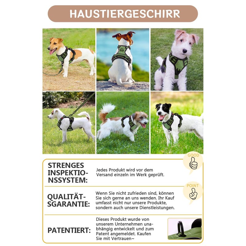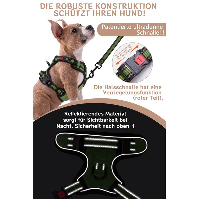 BaoCheng Anti-Pull Dog Harness, Small/Medium/Large Dogs, Breathable Mesh, Easy Loading and Unloading, 3 Buckles, Safety, Relieves Coughs, Reflective (Army Green, XS)