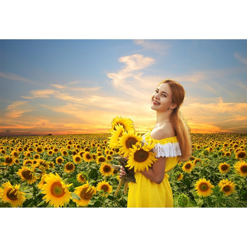Baocicco 10x8ft Vinyl Sunflowers Field Backdrops for Photography Background Summer Landscape Sunset Blue Sky Outdoor Holiday Party Backdrop Children Adults Portraits Photo Studio