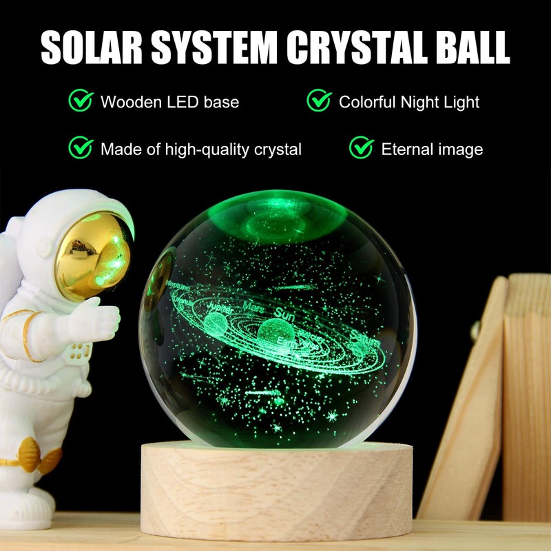 - Crafted from premium K9 crystal, this solar system crystal ball serves as an elegant decorative piece by day and a soothing night light by night, creating a magical ambiance in any room.