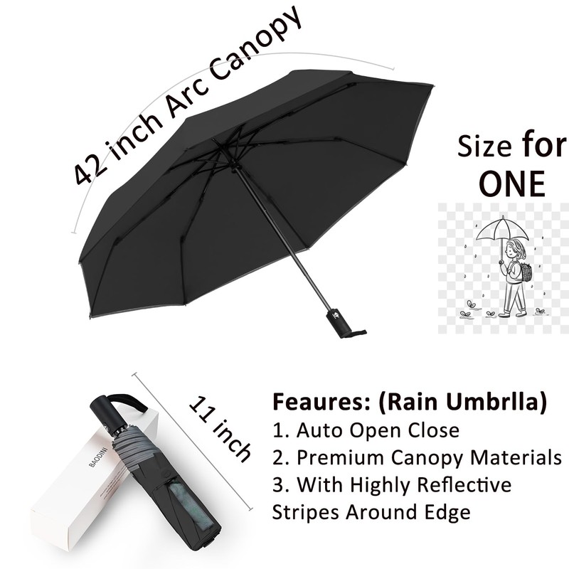 - Easy To Use Auto Open Close: With just the touch of a button, you can automatically open or close it, it should be noted that after press the button to close an automatic umbrella, you need to take some effort to push it back untill hear the "click"