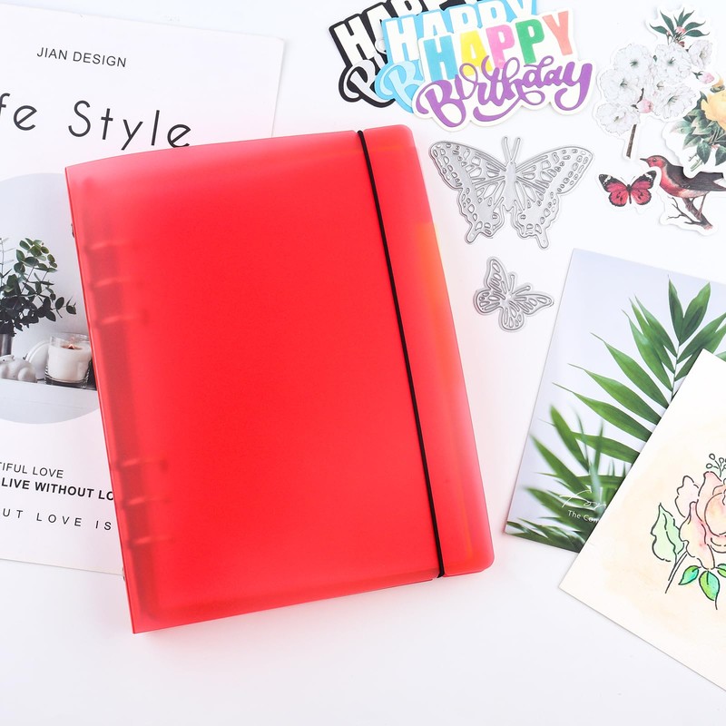 BAOFALI A5 6 Ring Binder Cover Clean Transparent Soft PVC for Refillable Notebook Shell withMatte surfaceforStamp & Die Storage (Red)