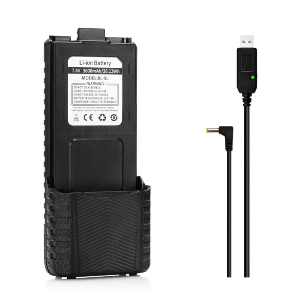 BAOFENG BL-5L 3800mAh Extended Battery Compatible with UV-5R UV-5RTP UV-5R 8W UV-5R Plus UV-5RA UV-5G UV-5G Pro GT-5R GT-5R Pro, Original Pack, Black
