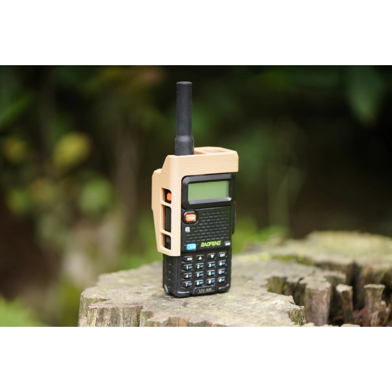 I needed a cage for my Baofeng UV-5R to stop myself from turning the volume knob and pressing buttons unwittingly. I designed this cage while referencing several other versions. My iteration has improved button hole placement.. a more robust shell, and can accommodate using the original clip and screws. I've also applied a texture in my printing process for a better grip and feel.