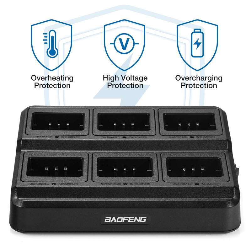 - [Compatible Models] Work well for UV-5R, UV-5R+ Plus, UV-5RTP, BF-F8HP, UV-5X3 etc. Charge 6 radios or 6 batteries at the same time. Full charge for 1800mAh BL-5 battery: 4-5H. Full charge for 3800mAh BL-5L battery:7-8H.