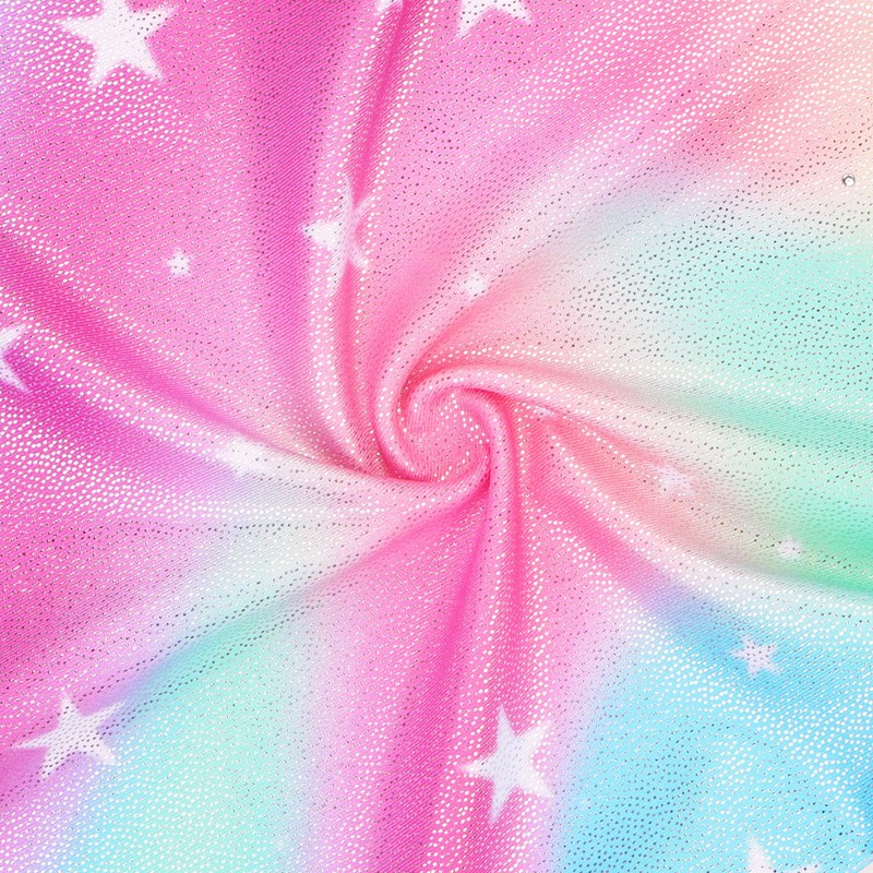 - The girls' gymnastics leotards with unique style and vibrant colors, like gradient pink, blue, rainbow, and other patterns.