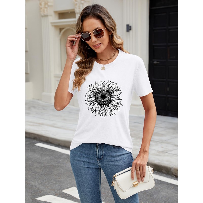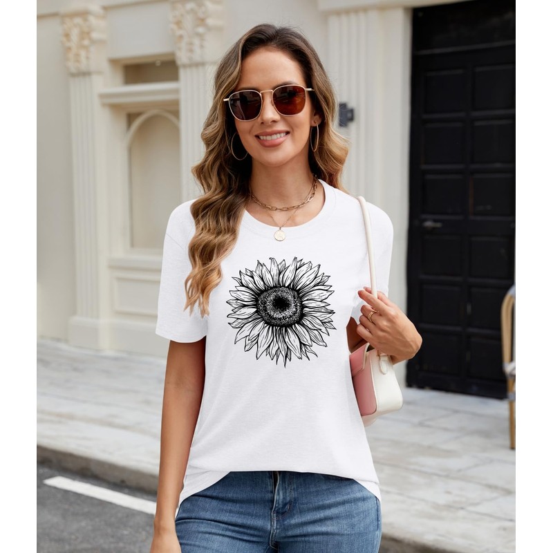 BAOKUAN Women Trendy Tops Sunflower Graphic Loose Summer Tees T-Shirts Blouse