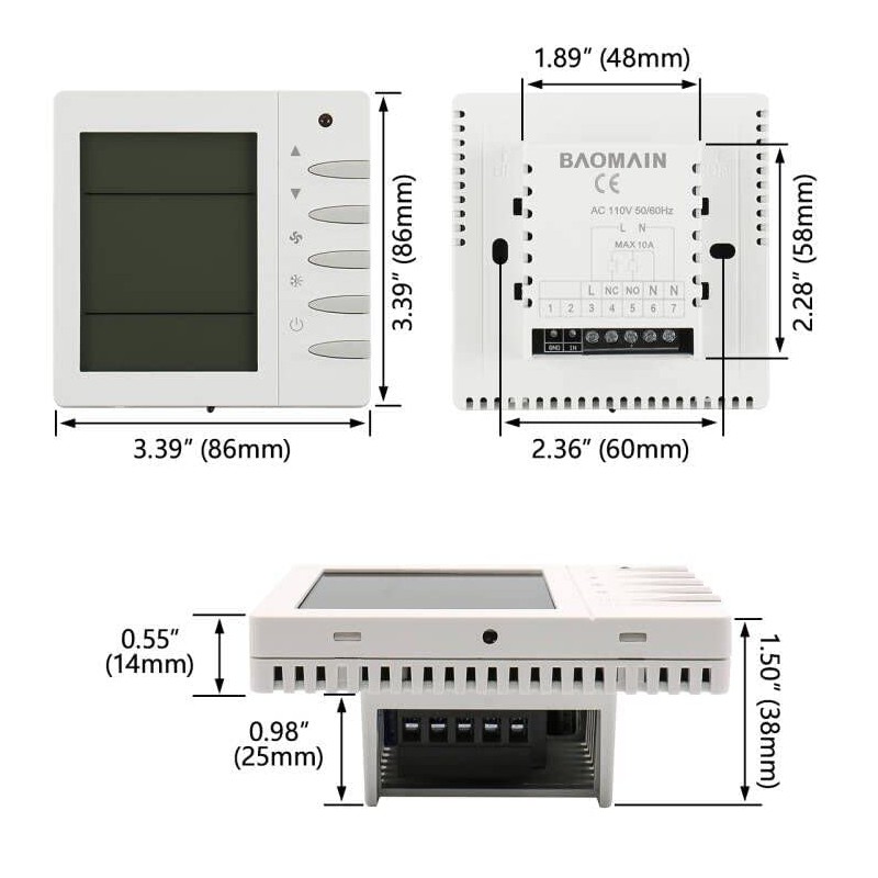 Baomain Programmable Thermostat, LCD Digital, None Battery Powered, AC110-120...