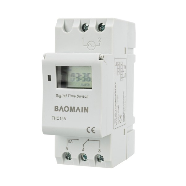 Baomain THC15A AC 220V - 240V Digital LCD Power Programmable Timer Time Switch Relay 16A Amp White