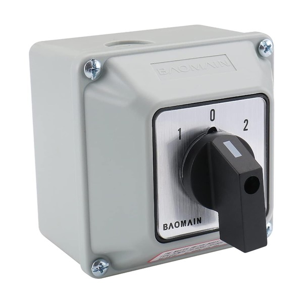 Baomain Universal Rotary Changeover Switch SZW26-20/D202.2D-W with Wider Master Switch Exterior Box 660V 20A 3 Position 2 Phase (3.15"x3.15"x3.7")