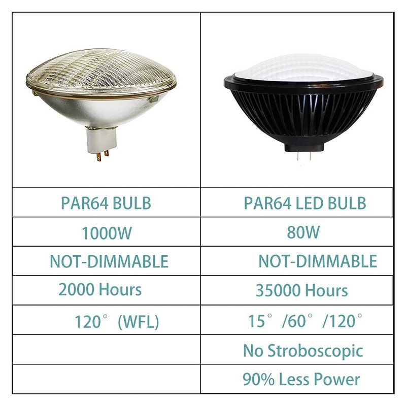 - 【Save electricity bill & Save your money & Much more brightness】✅ Replace PAR64 1000W traditional halogen bulb by 80W LED, save 90% on electricity bill of lighting, and high lumens bright enough to replace/retrofit/upgrade
