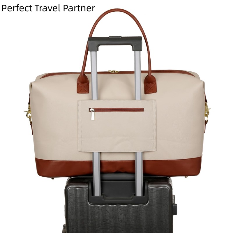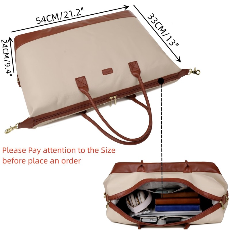 Baosha Vegan Leather Women Travel Weekender Bag Carry on Overnight Bag Large Hospital bag Stylish HB-14 (Beige)