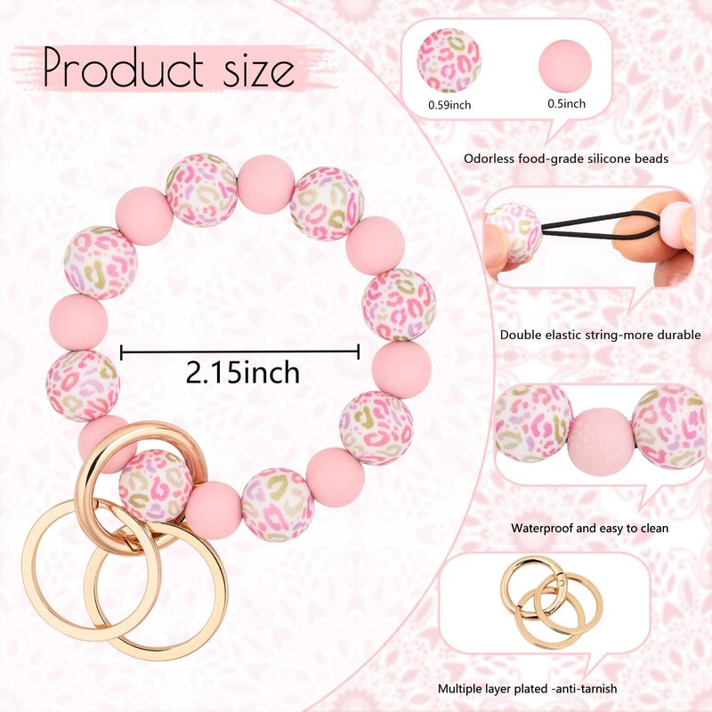 - Well Made & Comfortable Wear - Beaded key holder bracelet are made of BPA-free and food grade silicone, gold-plated keyring and PU leather tassel. The beads won't scratch against your skin or cause any irritation. Silicone wristband feels soft and comfortable on your wrist, the double stretch cord is elastic and durable, it can fits most women's wrists. The gold-plated keyring and lobster clasp will not easily chip off and will maintain its luster for a long time