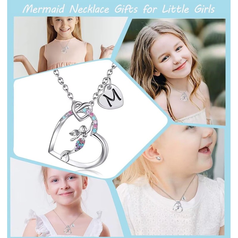 BAOWING Mermaid Necklaces for Little Girls Mermaid Gifts for Kids Girls Initi...