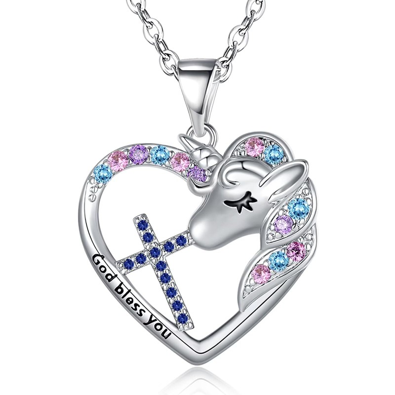 - ❤Best Christian Gifts ❤ A necklace features both colorful CZ unicorn and birthstone cross, engraved with the words(God bless you)!This a protective gift for your daughter/granddaughter/niece. Hope this amazing necklace will make your girl's wishes and dreams come true!!!