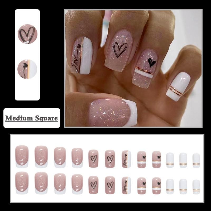 - About After Sales Guarantee - Due to the influence of lighting and shooting scenes, it is normal that there may be some errors between the medium square press glue on nail with heart design you received and the picture. If you are not satisfied, please contact us in time, and we will provide free return service