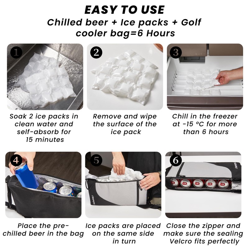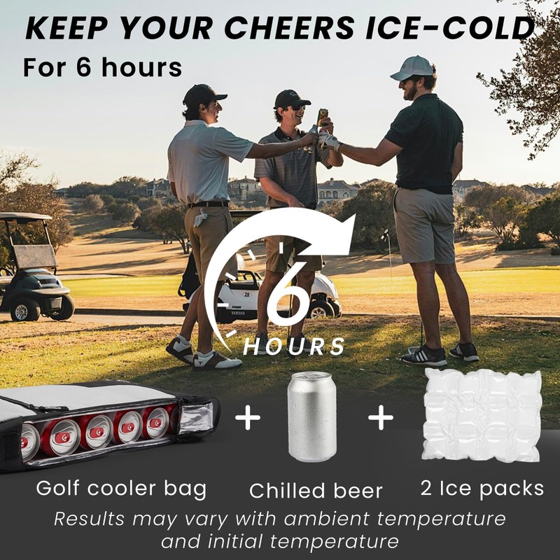 - 【6-Hour Cooling Performance】Chilled beer + ice packs + golf bag can maintain cooling for 6 hours, keep your beers, sports drinks, and snacks cold throughout your golf round. With efficient insulation, saving you from costly course purchases. Results may vary with ambient temperature and initial temperature.