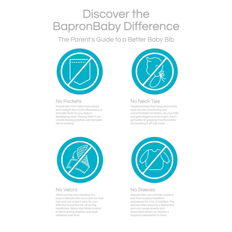 - RECOMMENDED BY PEDIATRIC FEEDING EXPERT: Baprons come highly recommended by pediatric feeding experts. Our unique design ties around the body, prioritizing safety and comfort for infants and toddlers. Baprons are intentionally pocket-less, eliminating extra weight that could otherwise pull on your baby's neck and cause potential neck injury or skin irritation. Baprons are safe for sensitive skin, children who dislike traditional bibs and/or have hypersensitivity to sensory stimuli.